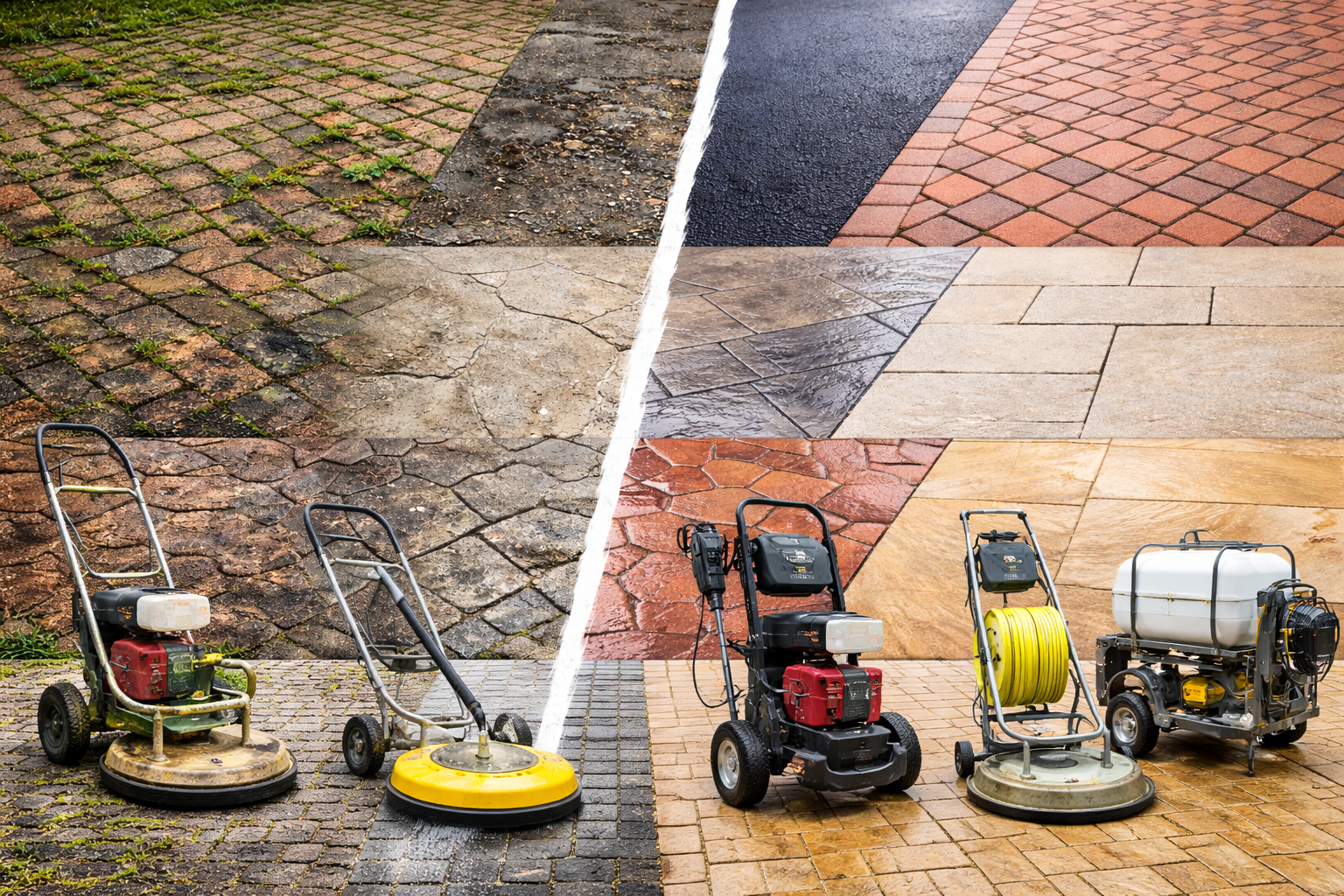 We use professional rotary surface cleaners and controlled pressure washing systems to remove: